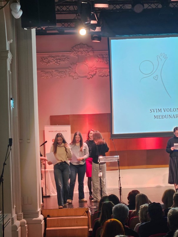 U sklopu obilježavanja Međunarodnog dana volontera, 5. prosinca 2025., volonterke našeg Školskog volonterskog kluba T.M., L.Č. i T.Č. dobile su priznanja za doprinos za svoj volonterski rad. Svečanost se održala u Hrvatskom domu u Splitu, gdje su bili nagrađivani svi volonteri koji su ostvarili značajnu ulogu u promicanju volonterstva u prošloj godini. Obzirom da je 2026. godina proglašena „godinom volonterstva“ od strane Ujedinjenih naroda, i naš Školski volonterski klub će nastaviti promicati značaj volonterstva u zajednici. Ovim putem željeli bismo zahvaliti svim volonterima koji sudjeluju u radu našeg Kluba, te im čestitati njihov dan!