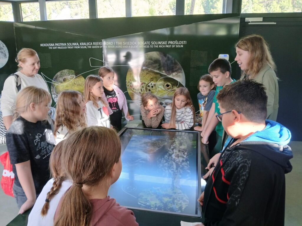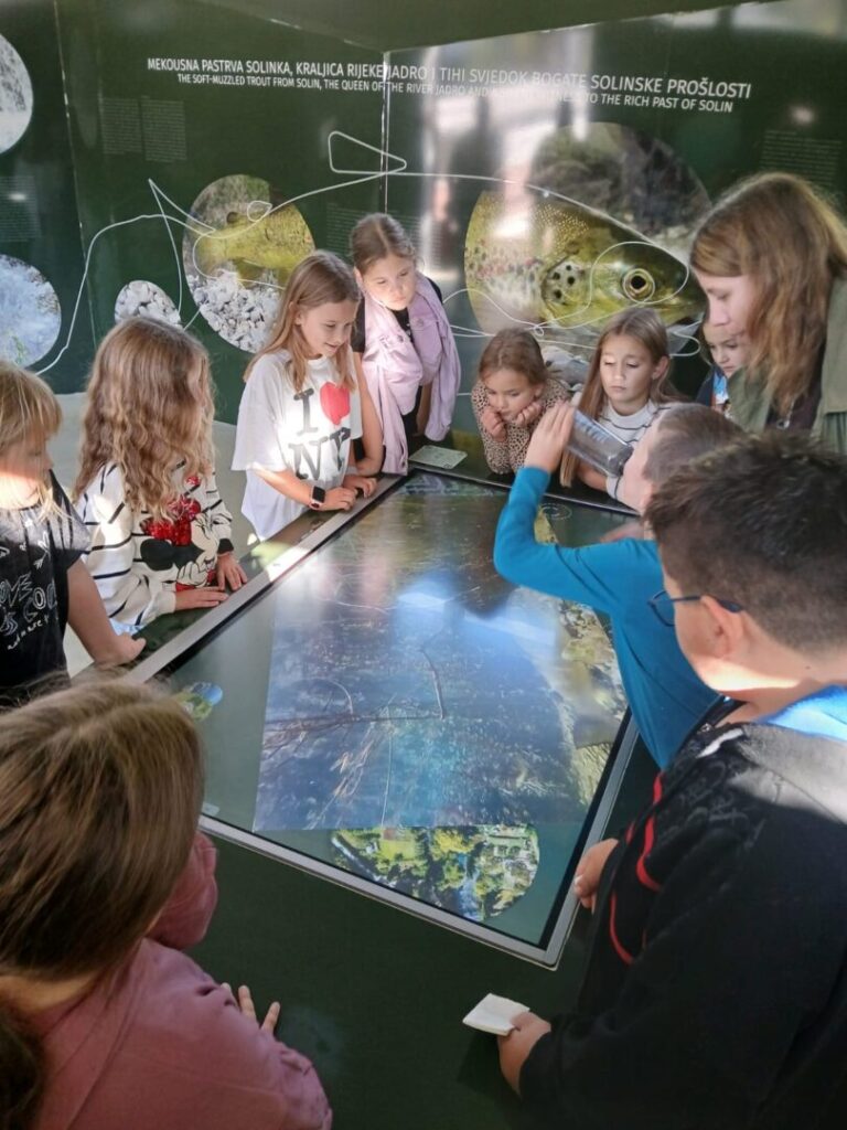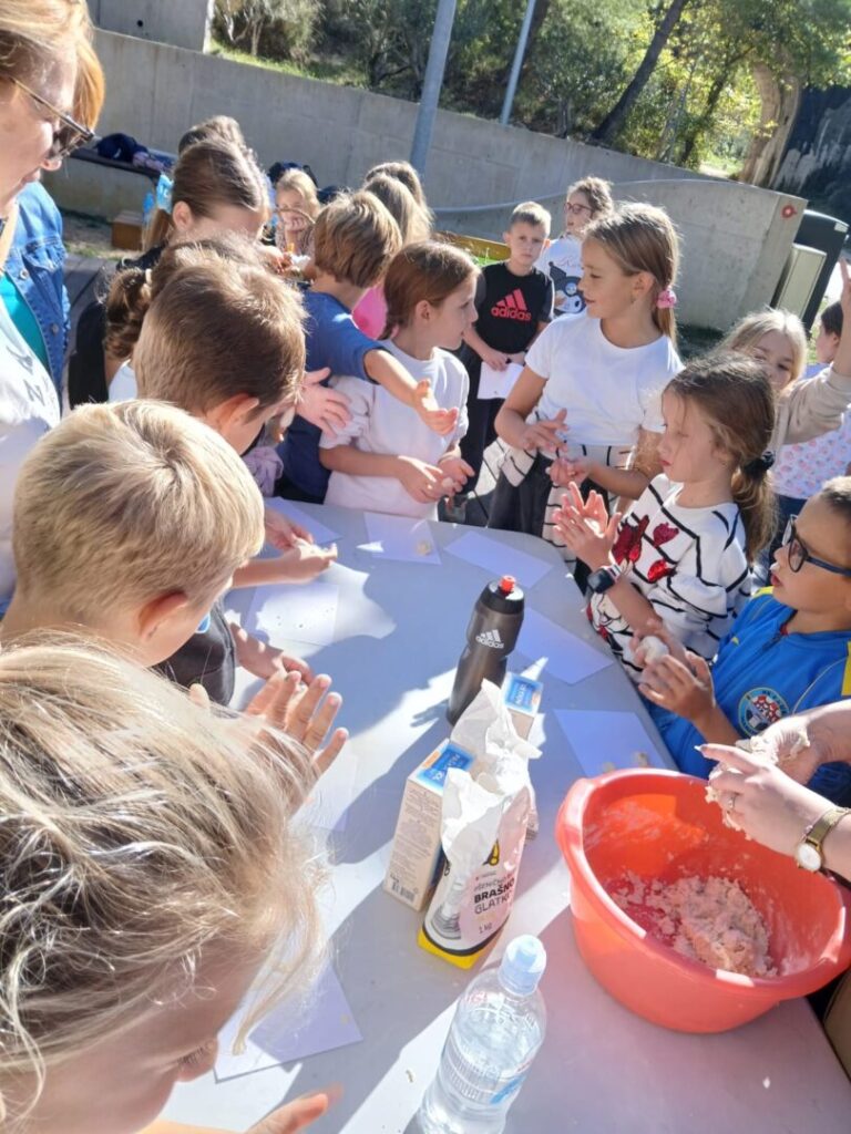 Zanimljiv tjedan za naše drugaše započeo je obilježavanjem Dana jabuka, a završio na Jadru-izvoru života. I vrijeme je u petak bilo na našoj strani, a već sama šetnja uz obalu rijeke bila je poseban doživljaj, gdje su djeca uočila georaznolikost našeg zavičaja. Na samom ulazu u centar upoznali su se s taktilnom kartom, edukativnim filmom i igrama saznali su dosta o endemskoj vrsti mekousnoj pastrvi Solinki. Naročito zanimljivo i zorno bilo je upoznavanje sa svojstvima mahovine kojom je obložen Akvadukt iz 3.st. koji još uvijek napaja vodom velik dio stanovništva. Djeca su sudjelovanja u branju i prešanju maslina, izradi zajedničke košare s plodovima zemlje te izradi figurica od slanog tijesta. Za kraj je uslijedila igra u dječjem parkiću. Umorni, puni novih spoznaja i promišljanja o čuvanju naše prirode, vratili su se svojim kućama.