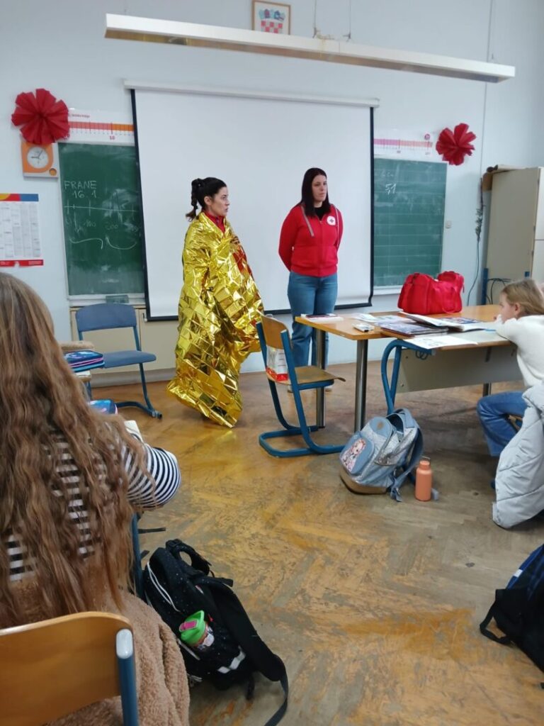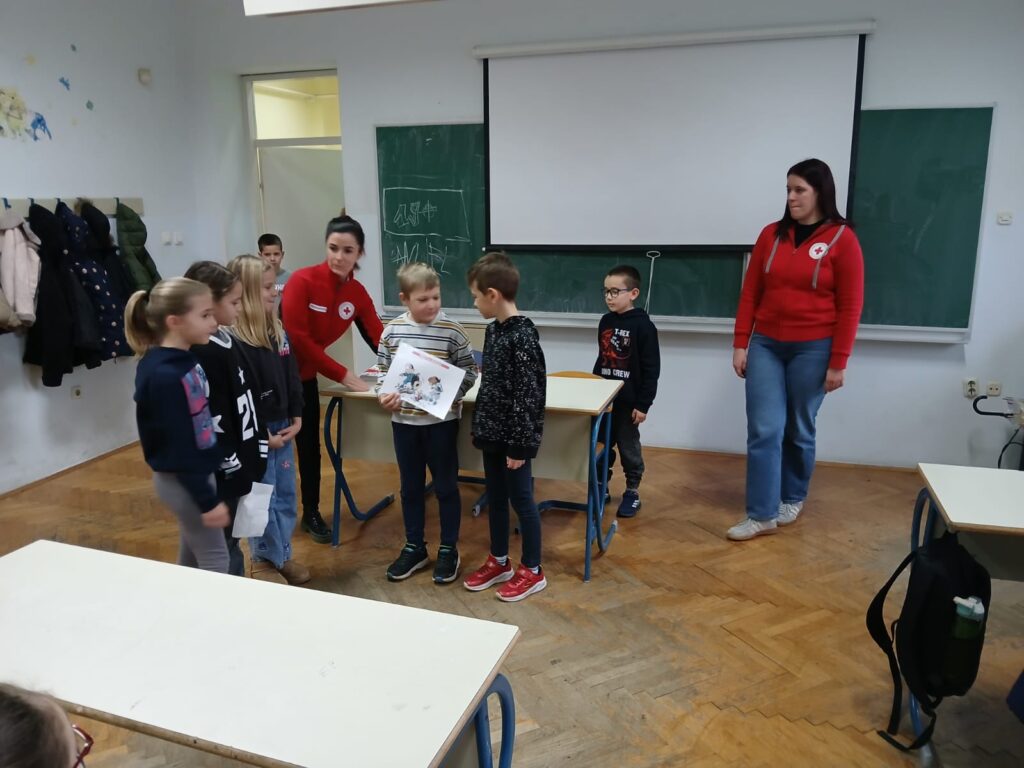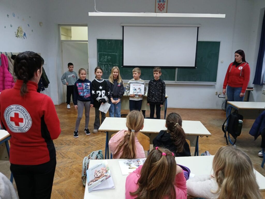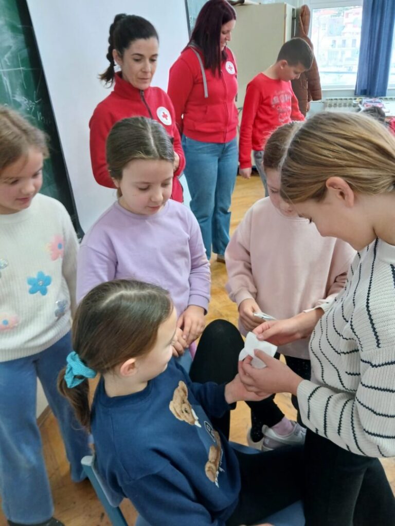 Na poziv učiteljica, vrijedne djelatnice Crvenog križa Trogir su učenicima 2.a i 2.b razreda održale radionicu Prva pomoć, upomoć! Učenici su aktivno slušali te naučili osnovne vještine pružanja prve pomoći prilagođene njihovom uzrastu. Zapamtili su kako sanirati ogrebotine, modrice, opekline te kako zaustaviti krvarenje iz nosa. Prigodnim igrokazima koji su sami osmislili pokazali su da su prijatelji koji znaju i žele pomoći. Hvala djelatnicama CK Trogir na širenju ideje humanosti.