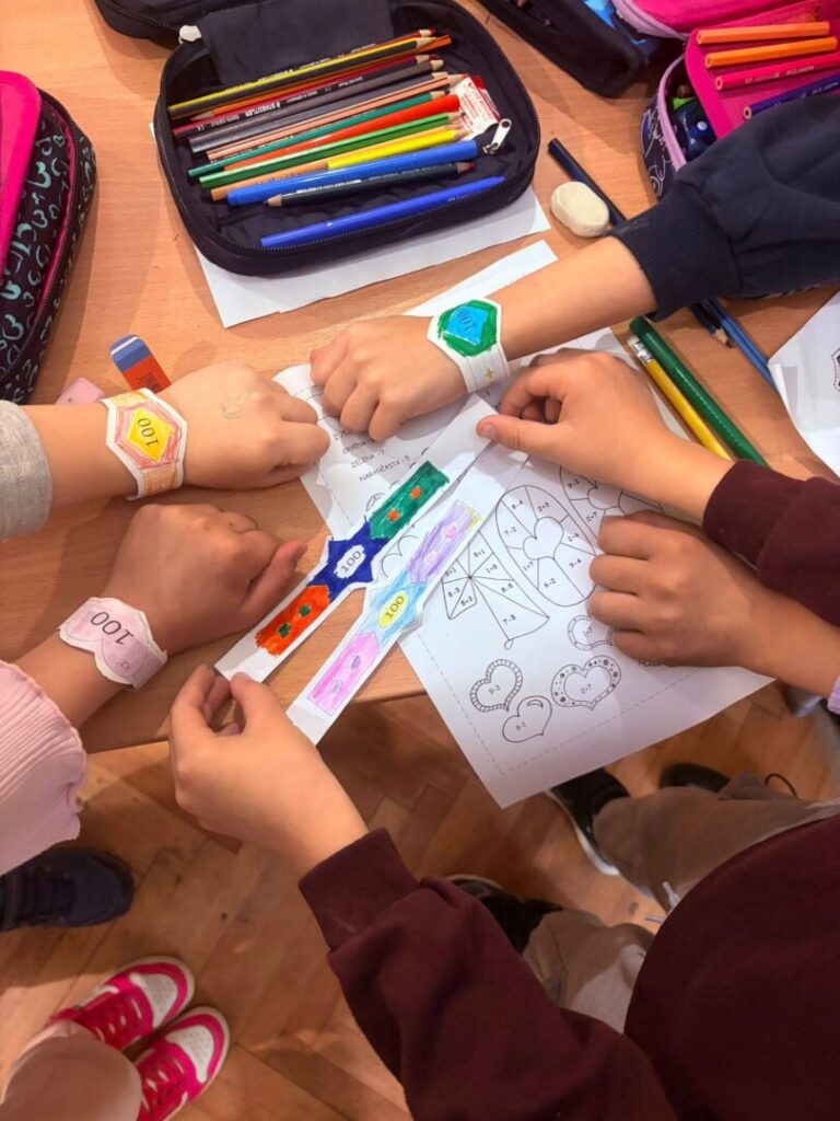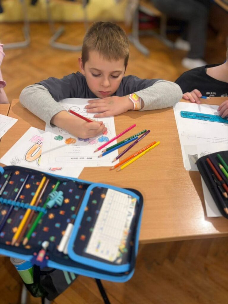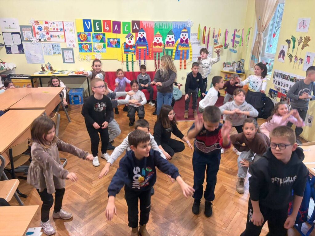 Jutro su započeli pjevajući himu 100.dana, do kraja dana i prvaši su je znali. Nastavili su s likovnim, izradili su krune i narukvice s brojem 100. Nizali su se tako i hrvatski, matematika, priroda, talijanski i engleski, a sve uz srca i ljubav jer stiže i Valentinovo.